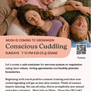 Bring a friend and Cuddle with us at Edanz Sundays 7PM to 10PM. Facilitated by David Mabelle More information and registration: https://hipsy.nl/groningen-mush-conscious-cuddling Sharing is appreciated . ……………………. Conscious Cuddling is a safe container designed for group nervous system co-regulation. We share a clear set of values, loving agreements, and healthy platonic boundaries. We begin with a […]