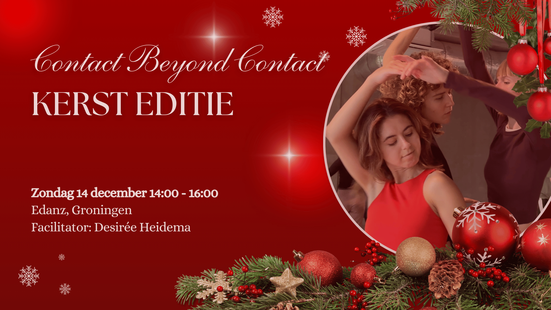 Dit is een community event: een iets kortere, lichte CBC-workshop om samen de magie van dansen in verbinding te ervaren, lekker te spelen en te ontspannen. Perfect om CBC eens te komen ervaren!